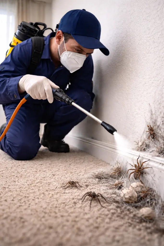 Spiders spin webs, leave droppings, and may bite if threatened. A growing spider population often signals other insect infestations, making professional control essential.